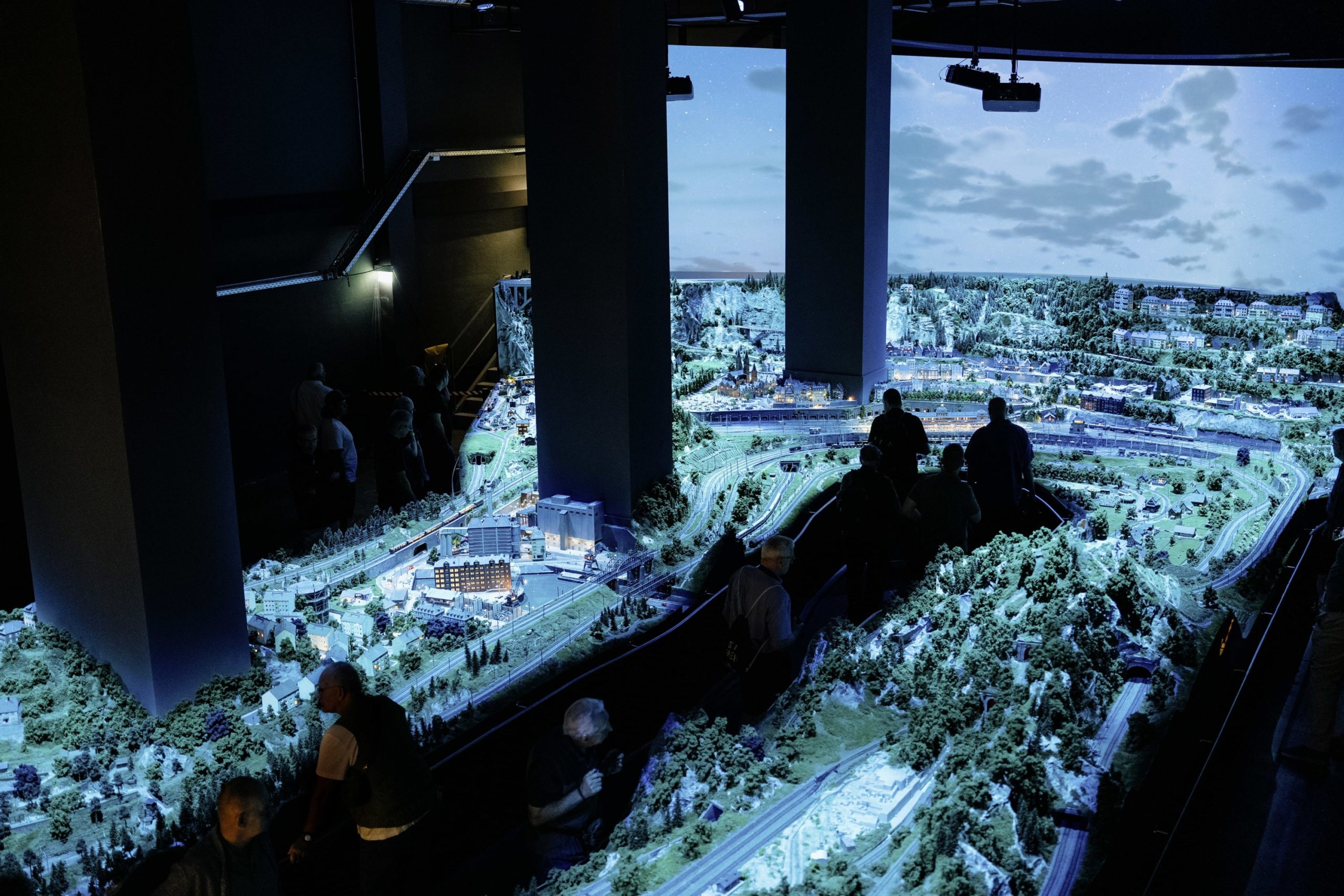 Eine über 100 Quadratmeter große Modellbahnanlage führt mit ihrer beeindruckenden Miniaturwelt durch mehrere Epochen der Bahngeschichte. Ergänzt wird dieses Erlebnis durch eine realitätsnahe Tag-Nacht- Projektion inklusive originalgetreuer Sound-Installation.