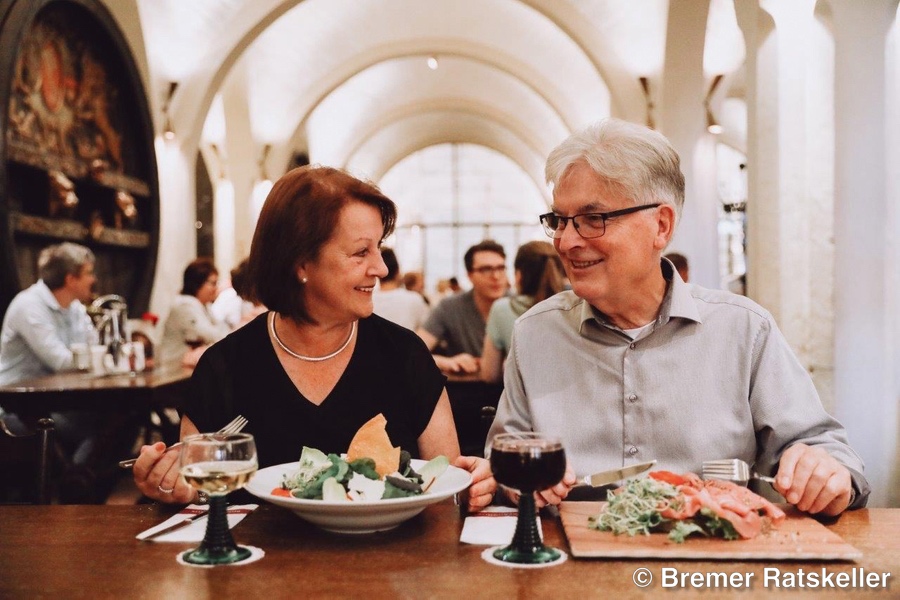 Für das Abendessen haben wir eine ganz besondere Location ausgesucht: den Bremer Ratskeller. Als Teil des UNESCO-Weltkulturerbes ist er eine der ehrwürdigsten und traditionsreichsten Gaststätten in Deutschland.